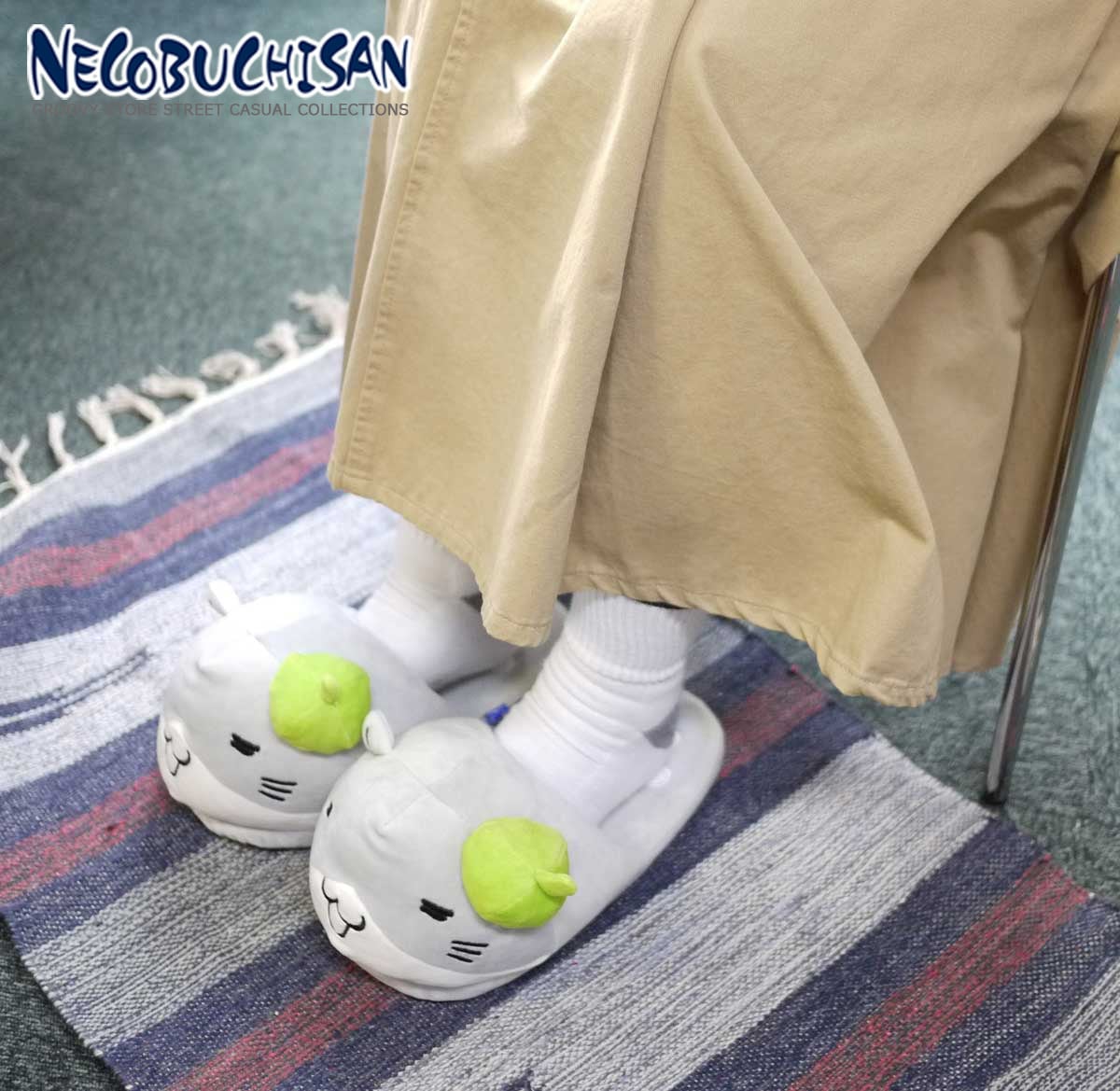 猫渕さんのおとうとのぬいぐるみスリッパ。柔らかいソフトボア製で足元ぬくぬくです。